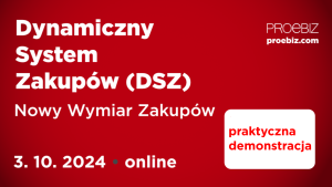 Zapraszamy na najnowszy webinar, który będzie poświęcony Dynamicznemu Systemowi Zakupów (DSZ). To wydarzenie skierowane jest do profesjonalistów ds. zakupów, menedżerów, zamawiających oraz wszystkich zainteresowanych nowoczesnymi narzędziami zarządzania procesem zakupowym i zamówień.
